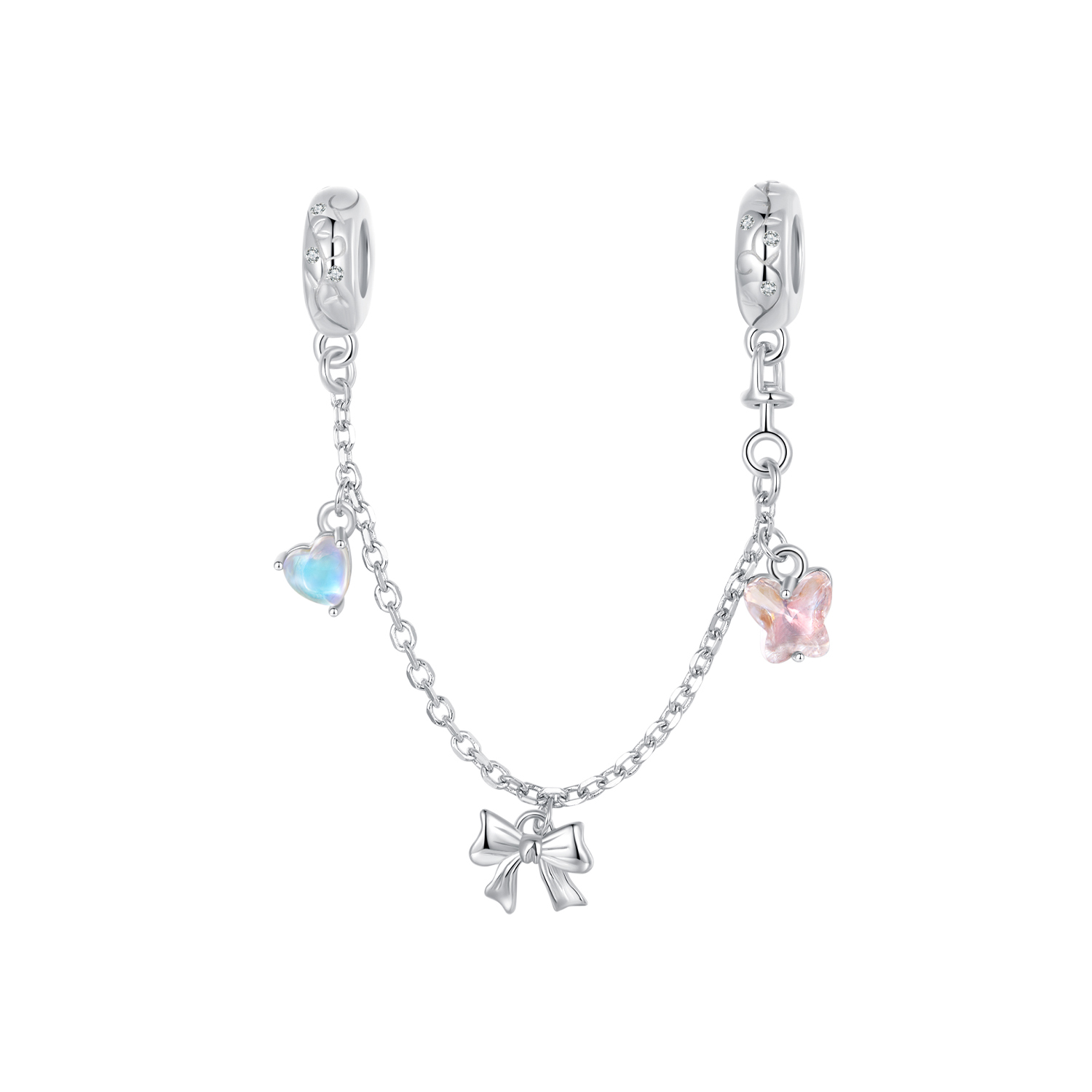 Safety chain with bow and hearts